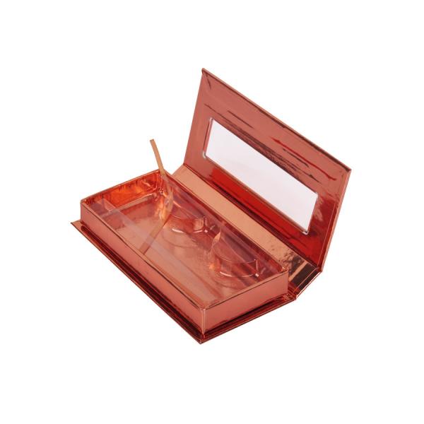 Pink 2mm Thick Cardboard Eyelash Gift Box With Plastic Tray Window OEM And PVC Support Inside Images |